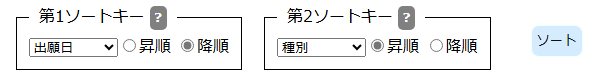 ソートキーは指定なし/出願日/出願番号/審決番号/種別/から選択します。ソート順は昇順/降順から選択します。