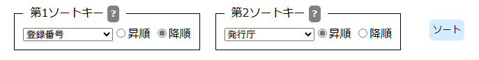 デフォルトの設定は、第2ソートキーが発行庁の昇順です。